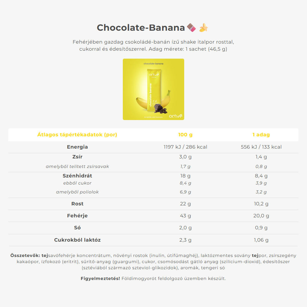 S banánom, samozrejme. Čokoládový FiberShake spája všetky najlepšie vlastnosti čokolády, doplnené o nebeskú chuť banánu. Jeho vznik bol inšpirovaný čokoládou máčanými pochúťkami z nášho detstva.