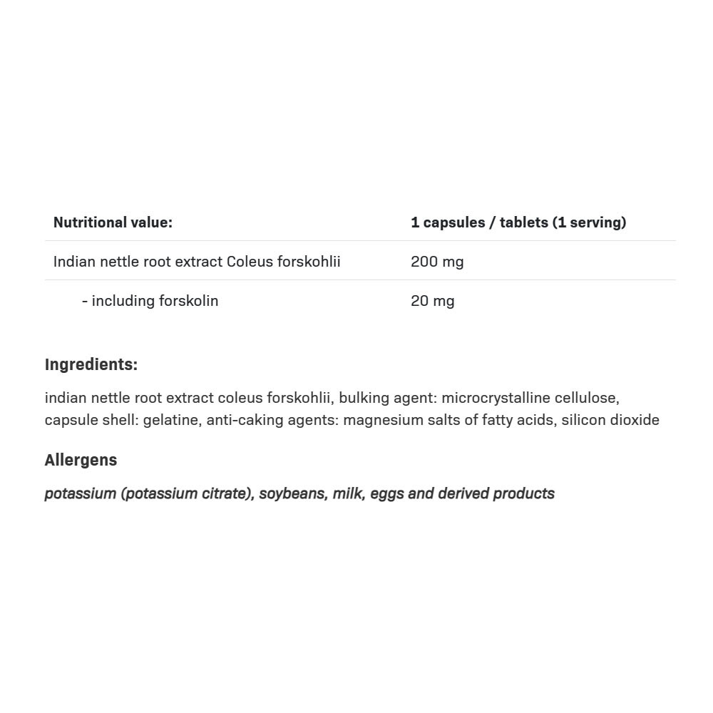 ALLNUTRITION COLEUS FORSKOHLII, známy aj ako indický coleus, je rastlina, ktorá sa používa už stáročia v indickej a ajurvédskej medicíne. So štandardizovaným obsahom 10% forskolínu poskytuje každá kapsula 200 mg pre optimálnu účinnosť.