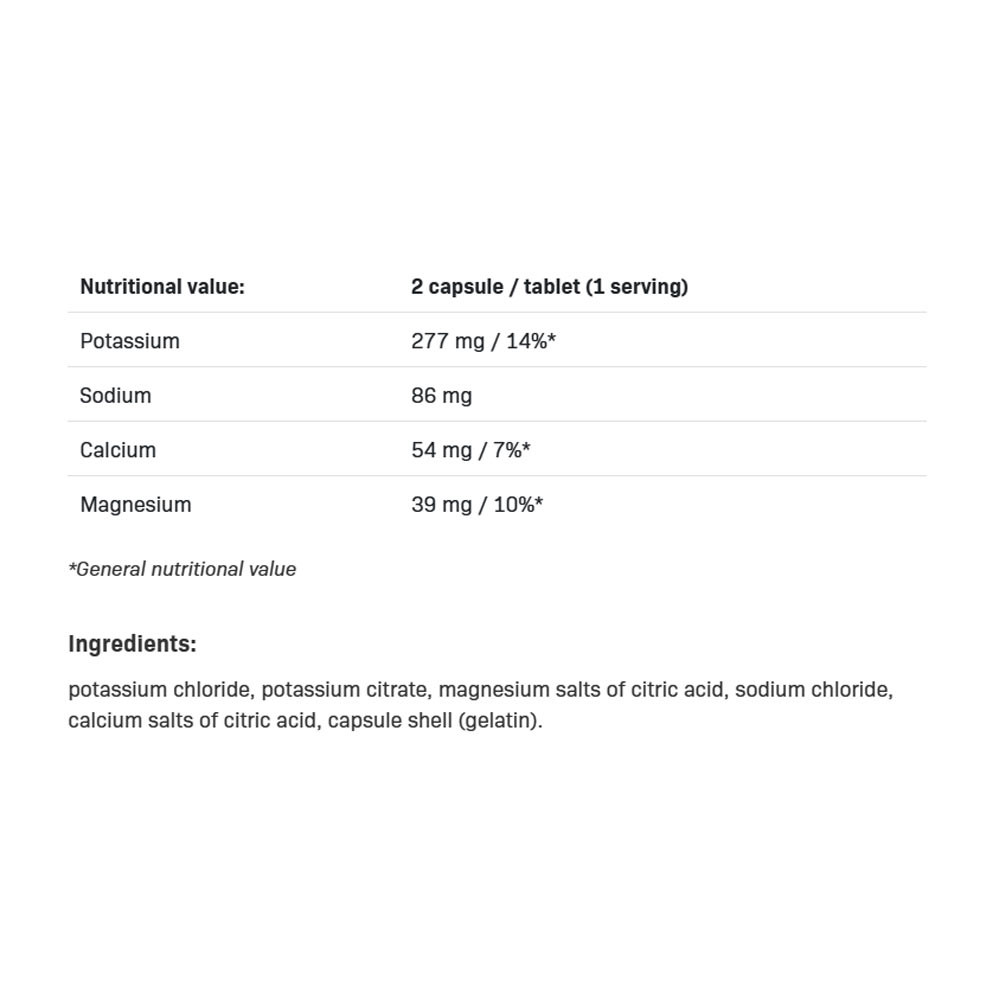 ZNIŽUJÚ ÚNAVU & PODPORUJÚ SVALY ELEKTROLYTY účinne podporujú telo počas fyzickej záťaže. Draslík prispieva k správnej funkcii svalov a nervového systému a zohráva dôležitú úlohu pri regulácii krvného tlaku.