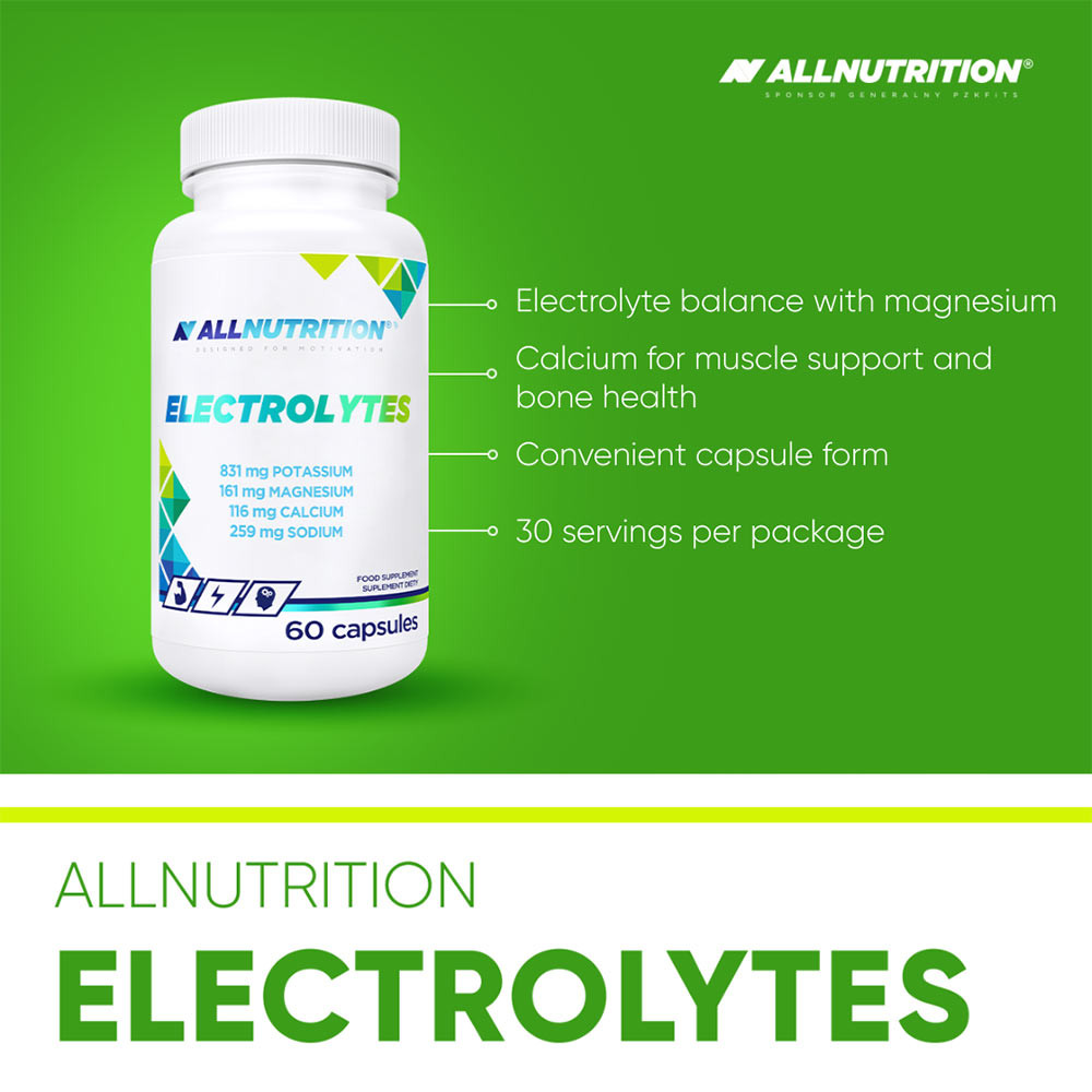 ALLNUTRITION ELECTROLYTES je pohodlný doplnok vo forme kapsúl určený na rýchlu a efektívnu hydratáciu a doplnenie elektrolytov. Perfektný pred, počas aj po tréningu – vždy, keď telo potrebuje okamžitú podporu na obnovu tekutín a elektrolytov.