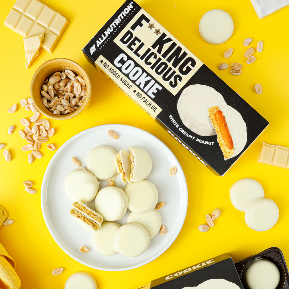 ALLNUTRITION FITKING DELICIOUS COOKIE WHITE CREAMY PEANUT sú fantastické, krehké sušienky vyrobené bez pridaného cukru alebo palmového oleja!