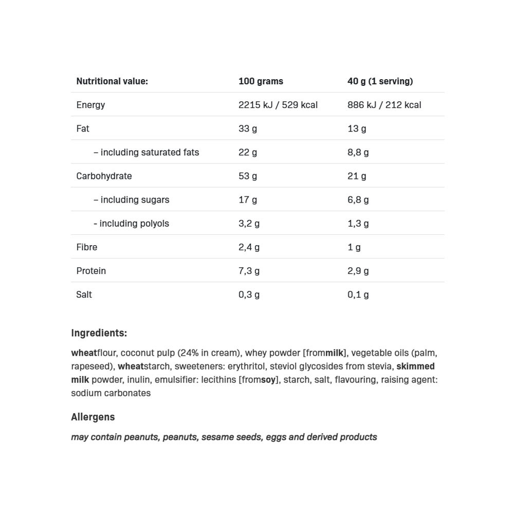 Oblátky plnené krémom (73 %). Obsahuje sladidlá. Bez pridaného cukru. Obsahuje prirodzene sa vyskytujúce cukry. Nekonzumujte, ak ste alergický alebo citlivý na niektorú zo zložiek.