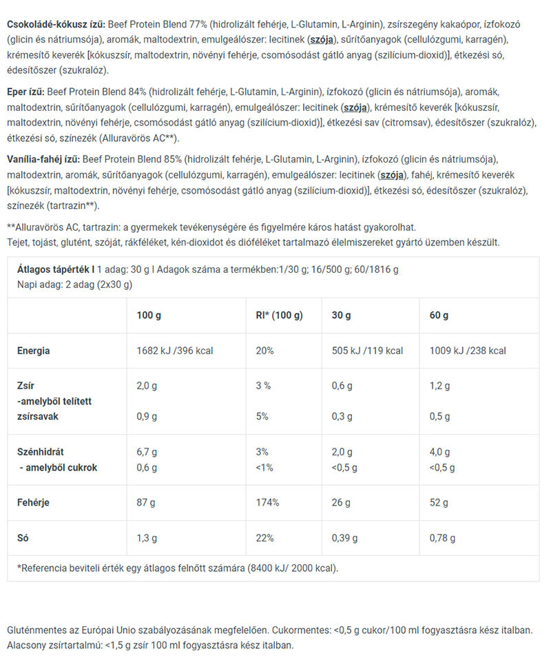 • Beef Protein je výborným zdrojom bielkovín pre každého, pomáha udržiavať zdravie kostí a svalovej hmoty a prispieva k rastu svalovej hmoty