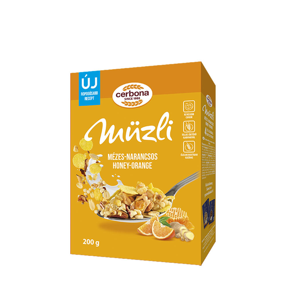 Medovo-pomarančové müsli má znížený obsah cukru a je bohaté na hodnotné živiny a vlákninu, vďaka čomu ho môžete jednoducho zaradiť do zdravej stravy. Neodolateľne chutné müsli vzniká vďaka medu, pomaranču, zázvoru, ľanovým semienkam a chrumkavým cereálnym lupienkam zo štyroch druhov obilnín a ovsených vločiek. Nezabudnite vyskúšať aj naše ďalšie druhy müsli!