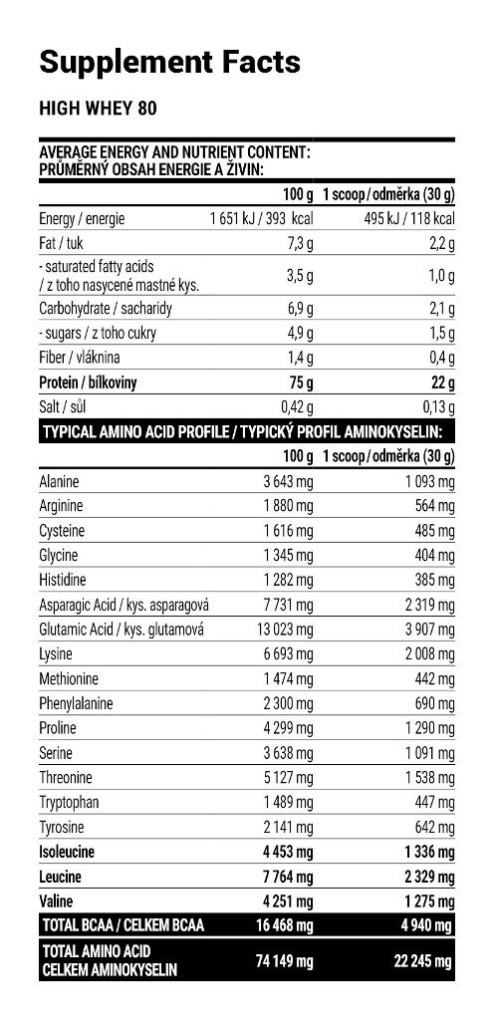 Veľkou výhodou tohto výrobku je obsah všetkých bielkovinových frakcií - pozri zloženie. Do výrobku bolo pridaných sedem komplexov tráviacich enzýmov pre najlepšiu stráviteľnosť a využiteľnosť bielkovín vo svaloch. Boli použité tieto enzýmy: papaín, alfa-amyláza, bromelaín, laktáza, celuláza, neutrálna proteáza, lipáza. Hlavným použitým sladidlom bolo 97 % sladidlo z rastliny Stevia! CFM Instant Whey 80 sa dodáva v 13 skvelých príchutiach. Ovocné príchute obsahujú lyofilizované ovocie (to znamená, že neobsahujú žiadne chemikálie) a v chuti ho môžete cítiť! Teraz si dovolíme tvrdiť, že náš proteín CFM Instant Whey 80 chutí najlepšie zo všetkých! Chuť je bohatá, výrazná a krémová. Obsah bielkovín je 75 %. Tento výrobok je obľúbený (okrem vyššie uvedeného vynikajúceho zloženia) pre svoju jednoduchú prípravu - dokonale instantný, bez prášku a hrudiek.