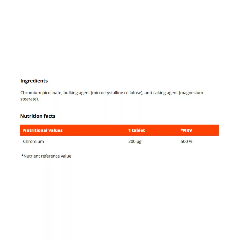Chrómium pikolinát je funkčný výživový doplnok, ktorý obsahuje minerál chróm. Tento minerál prispieva k udržiavaniu normálnej hladiny glukózy v krvi, vďaka čomu je ideálnou voľbou pre každého, kto sa chce v tomto smere dobre starať o svoje zdravie. Okrem toho pomáha aj pri optimálnom metabolizme makroživín. Chróm sa prirodzene nachádza v potravinách, ktoré konzumujete, napríklad v obilninách, ovocí a zelenine. Odporúčaný denný príjem chrómu však môžete jednoducho doplniť aj prostredníctvom výživových doplnkov. Tento produkt obsahuje chróm viazaný na pikolínovú kyselinu, čo je funkčná forma, ktorá vám môže pomôcť optimalizovať starostlivosť o vaše zdravie.