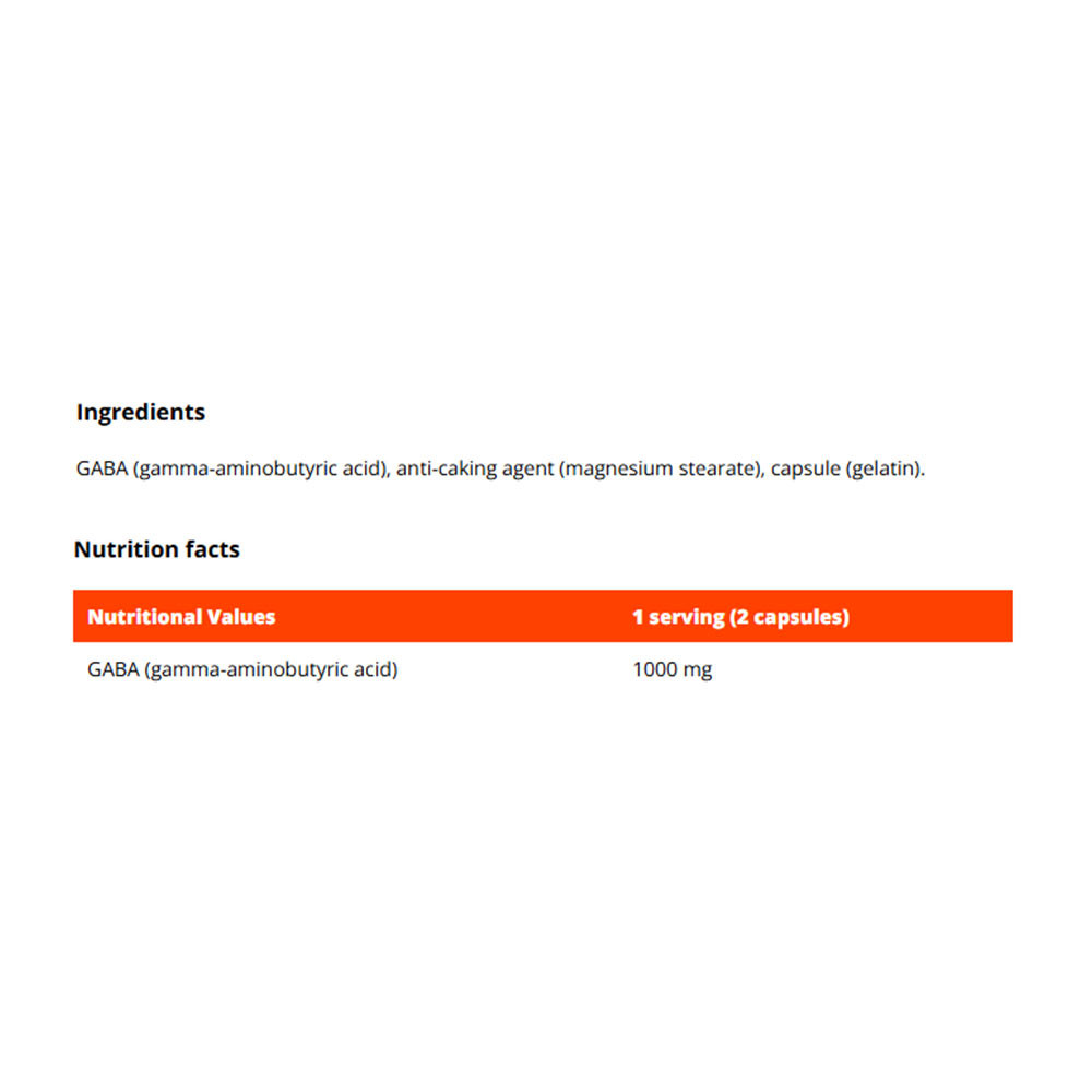 GABA je kyselina gama-aminomaslová, ktorá sa bežne nachádza v našom mozgu. Je jedným z inhibičných neurotransmiterov. Tieto látky vo všeobecnosti slúžia na prenos signálov medzi nervovými bunkami. Používa sa vo forme výživových doplnkov ako súčasť vyváženého životného štýlu. V tomto produkte nájdete GABA vo forme praktických kapsúl, ktoré sa ľahko užívajú.