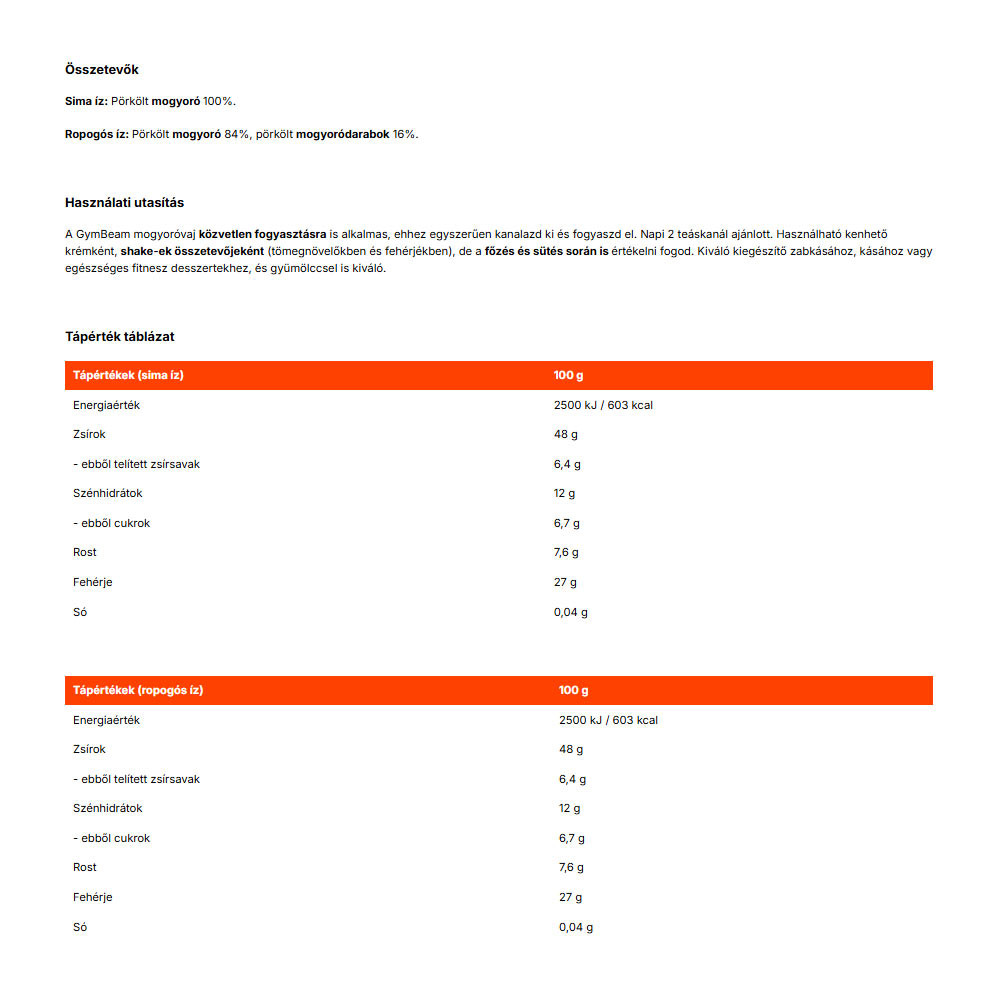 Tento orechový krém nie je len snom pre vaše chuťové poháriky, ale pýši sa aj vynikajúcimi výživovými hodnotami. Je zdrojom bielkovín, ktoré podporujú rast a udržanie svalovej hmoty, ako aj udržiavanie zdravých kostí. Jedna porcia (cca 30 g) môže obsahovať až 8 g bielkovín. Arašidové maslo bez cukru a palmového oleja je prirodzeným zdrojom nenasýtených tukov. Má tiež vysoký obsah vlákniny, vďaka čomu je ideálnou súčasťou zdravej stravy.