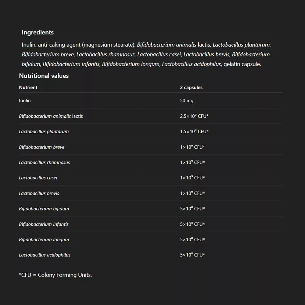 S dôrazom na kvalitu sme k probiotikám pridali aj inulín. Táto kombinácia vytvára komplexný produkt, ktorý je vynikajúcou voľbou pre každého, kto si cení výnimočnú starostlivosť o seba.