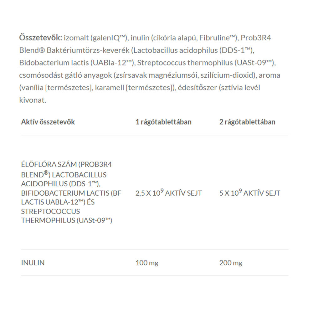 JutaVit Probium Kid pre deti + inulín je výživový doplnok s obsahom Lactobacillus acidophilus (DDS-1™), Bidobacterium lactis (Bf lactis UABla-12™), Streptococcus thermophilus (UASt-09™) a inulínu s príjemnou prírodnou vanilkovou a karamelovou arómou a sladidlom.