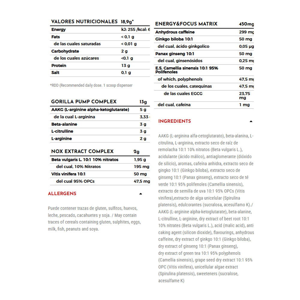 Kombinácia 5 g AACG, 3 g citrulín malátu a 2 g beta-alanínu, aminokyseliny produkujúcej oxid dusnatý, ktorú dnes ponúka len veľmi málo prípravkov na trhu v tak vysokých dávkach, znamená, že dosahuje novú úroveň vazolidácie.