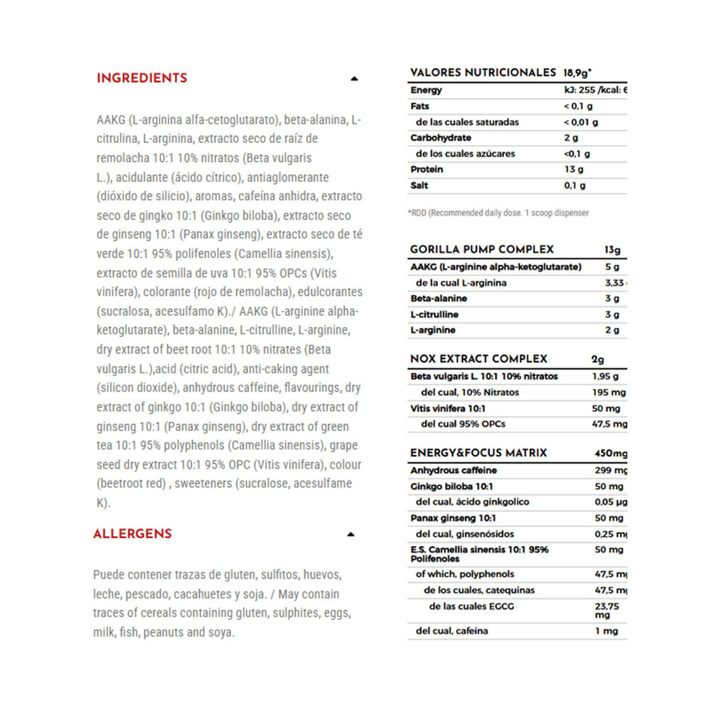 Kombinácia 5 g AACG, 3 g citrulín malátu a 2 g beta-alanínu, aminokyseliny produkujúcej oxid dusnatý, ktorú dnes ponúka len veľmi málo prípravkov na trhu v tak vysokých dávkach, znamená, že dosahuje novú úroveň vazolidácie.